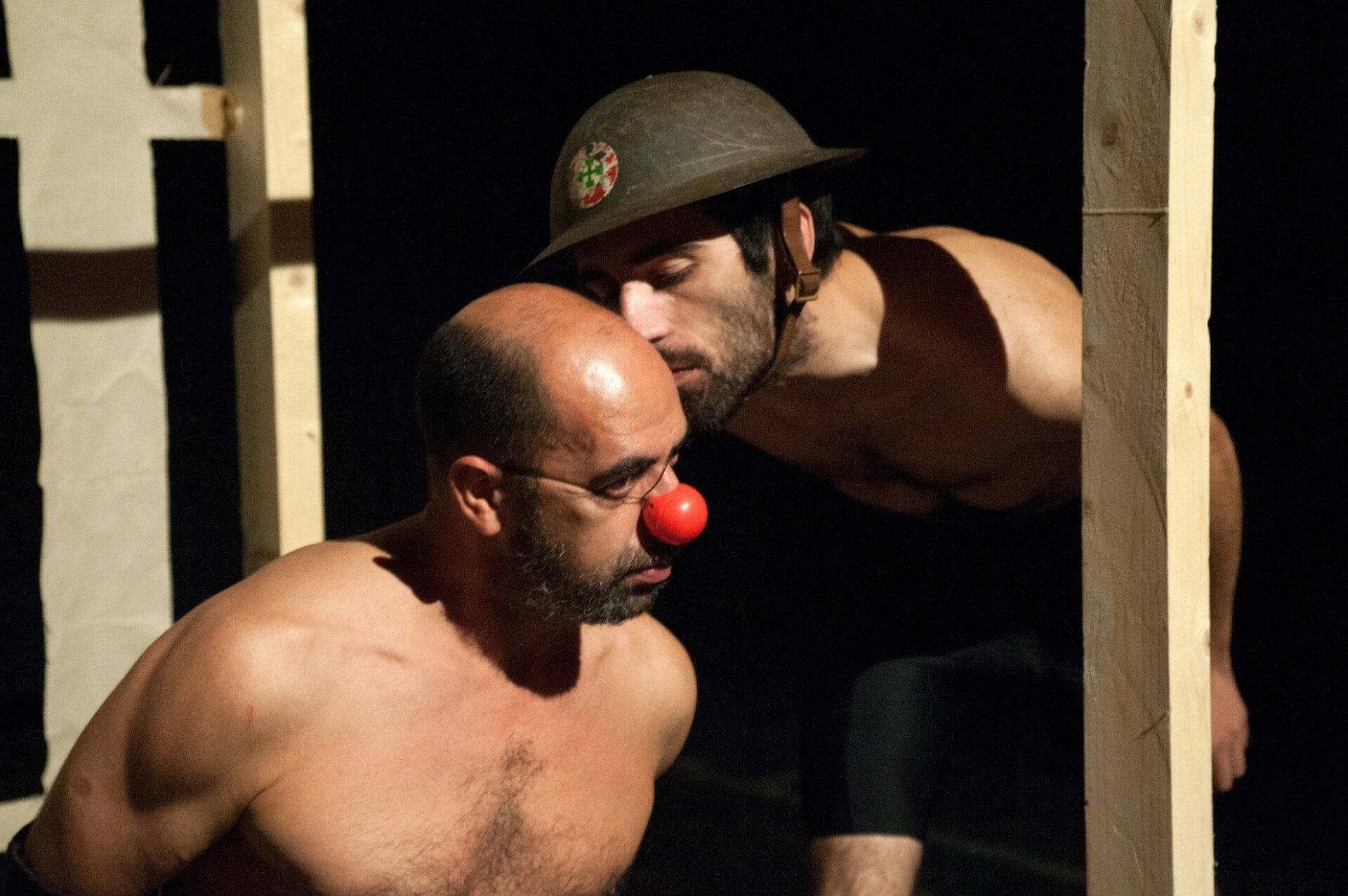 O espectáculo é representado como uma comédia negra, aproximando-o de uma farsa trágica (!), oscilando entre a gargalhada franca e o sorriso amarelo, o riso libertador e a reflexão, parodiando obscenamente agressões físicas e mentais perpetradas sobre o prisioneiro, procurando chegar ao público de forma a que este participe, física e mentalmente, num exercício “quase” sadomasoquista...