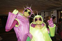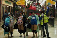 Dois primitivos, vindos não se sabe exactamente de onde, enroupem no Parque Nascente, dirigindo-se à praça de alimentação atraídos pelos fortes odores culinários.