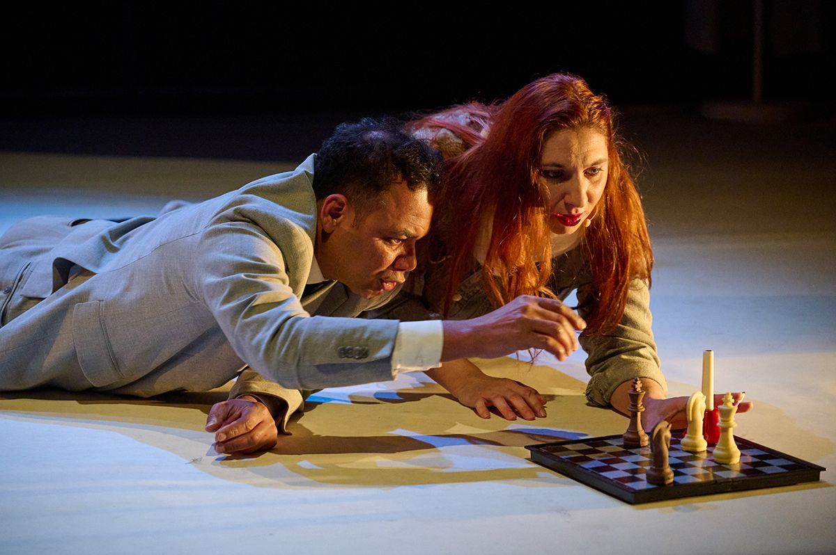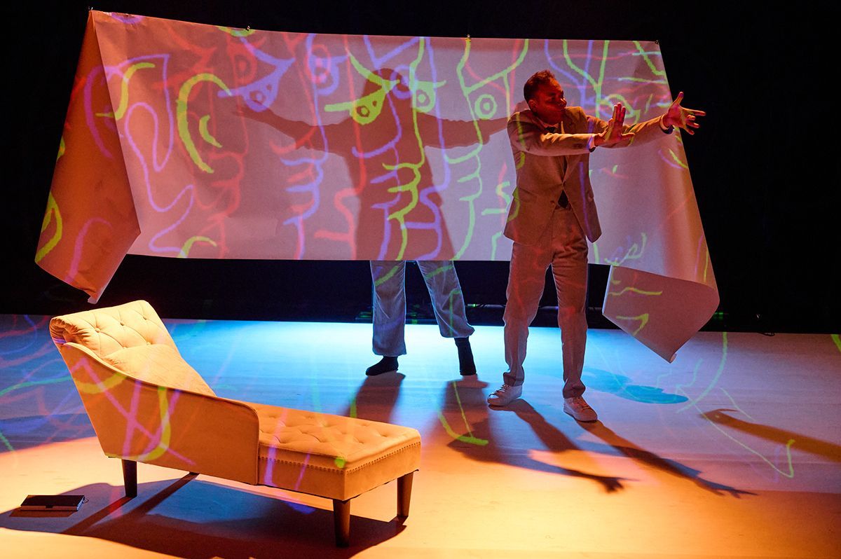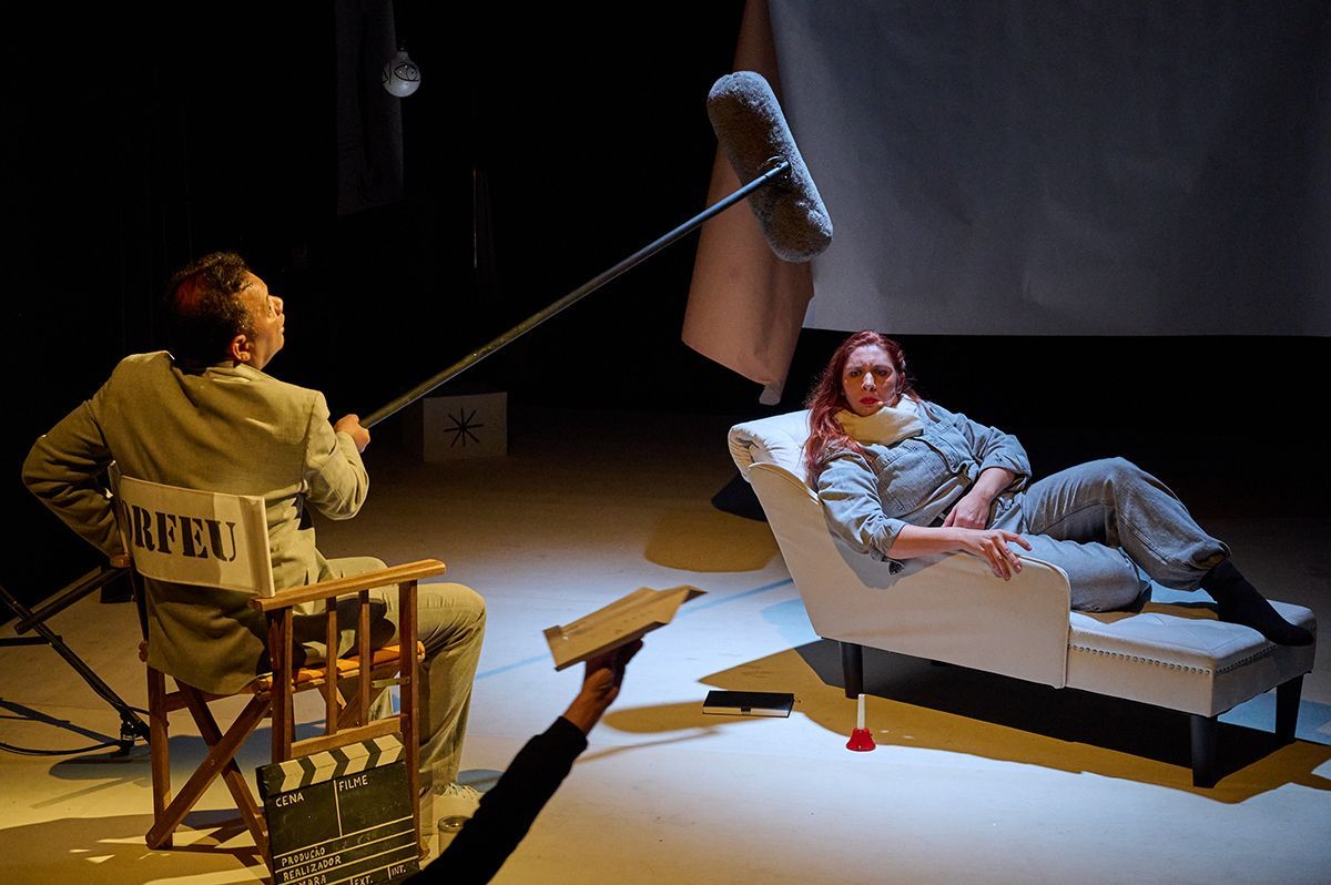 Toda essa multidão de delírios atravessa o corpo de apenas dois atores — a Daniela e o Flávio — com quem trabalho há anos e com quem partilho uma cumplicidade rara. Todos nós já desempenhámos, uns para os outros, tanto o papel de ator como o de encenador: somos uma espécie de tridente de criadores residentes. O Flávio dirigiu-me em Armazenados (2018) e dirigiu a Daniela em Hilda Hilst – Afundando os Dedos na Matéria do Mundo (2023); a Daniela dirigiu-me a mim e ao Flávio em Sussurros de Sombra (2025); e agora dirijo-os eu. Essa familiaridade simplifica a direção de atores, abre espaço para uma entrega total com cumplicidade e confiança.